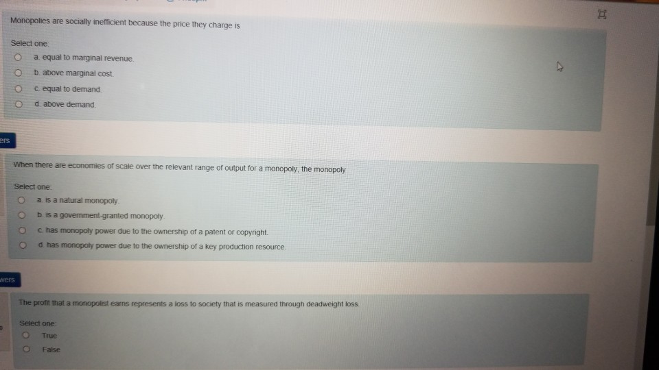 Solved Monopolies Are Socialy Inefficient Because The Price Chegg Com