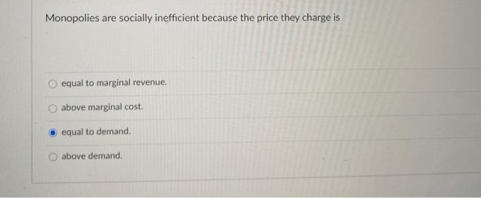 Solved Monopolies Are Socially Inefficient Because The Price Chegg Com